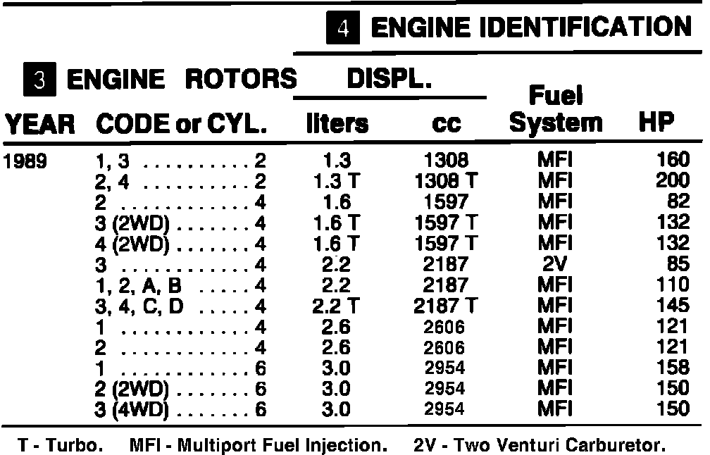 (4) ENGINE IDENTIFICATION: On the line where the engine code appears, read to the right to identify the engine.