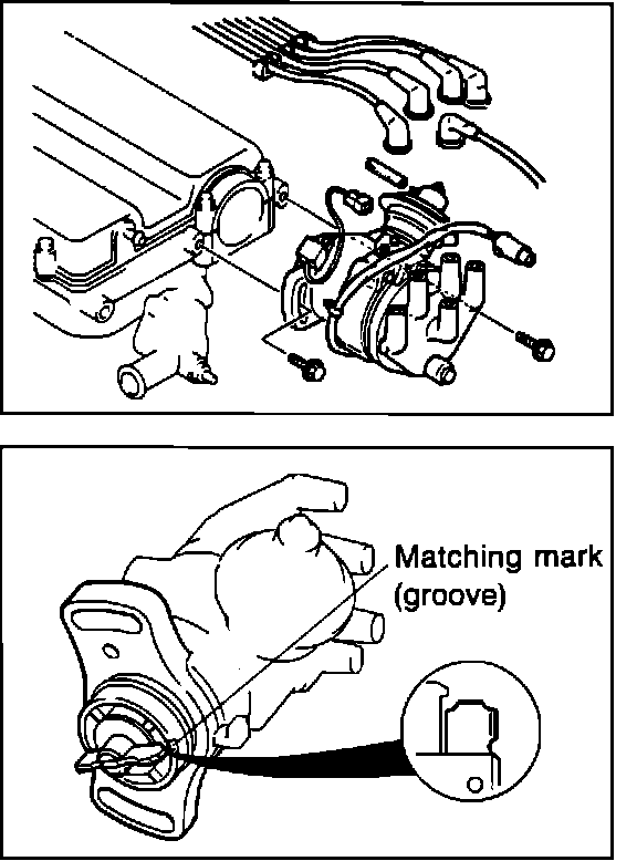 3. Align distributor drive blade with grooved matching mark on distributor body.