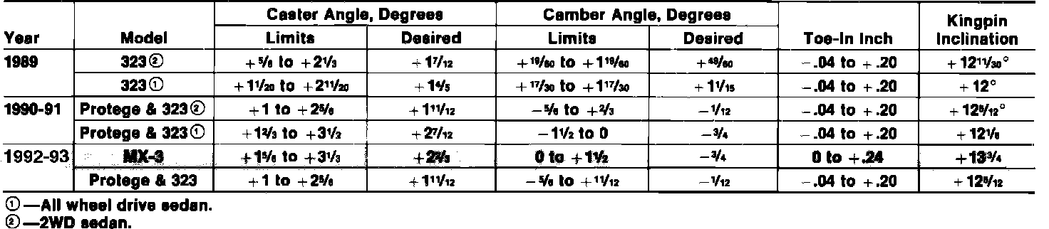 Front Wheel Alignment Specifications: