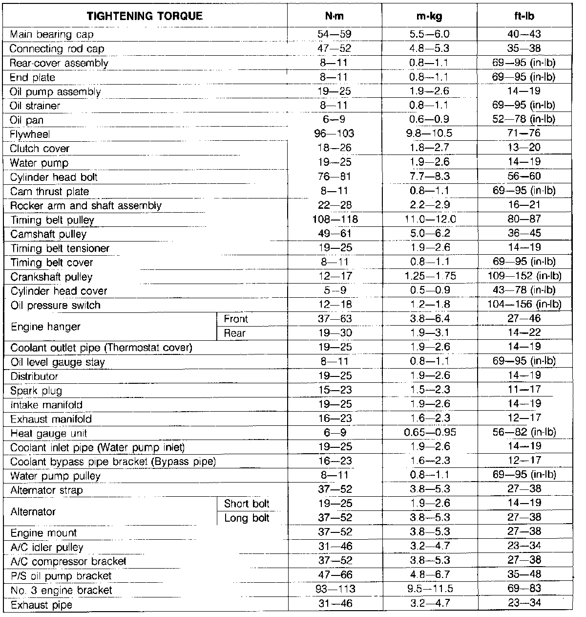 Torque Chart: