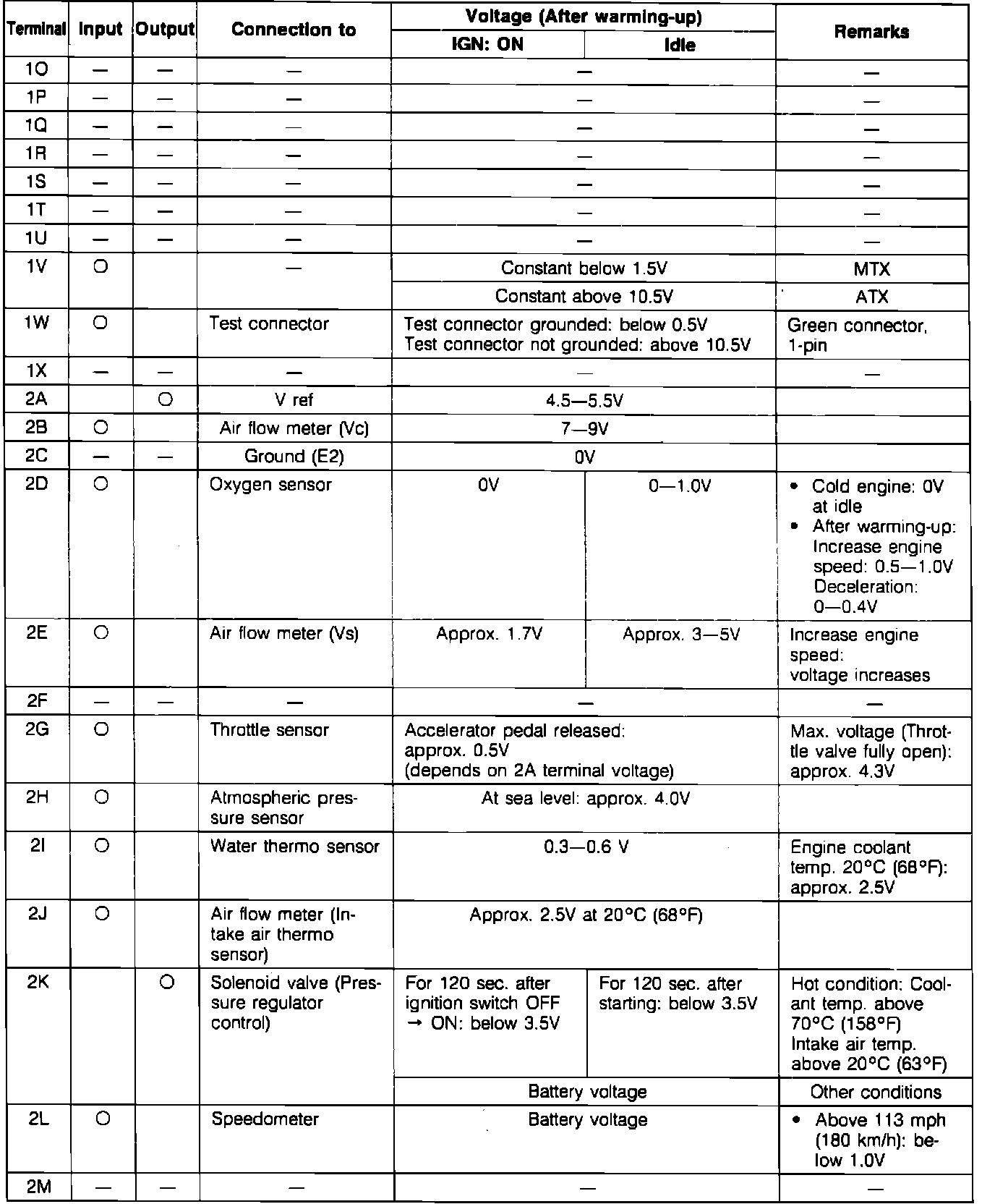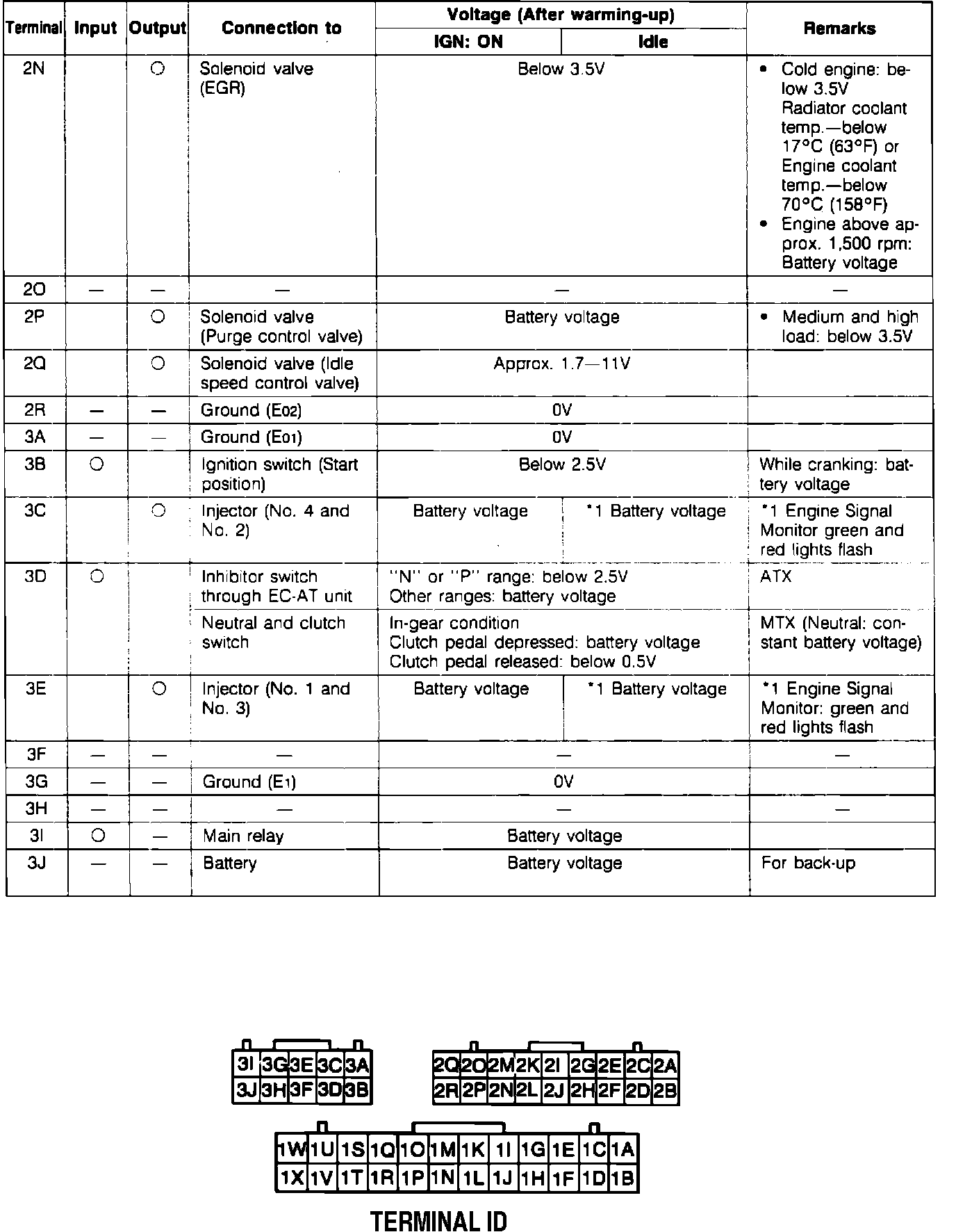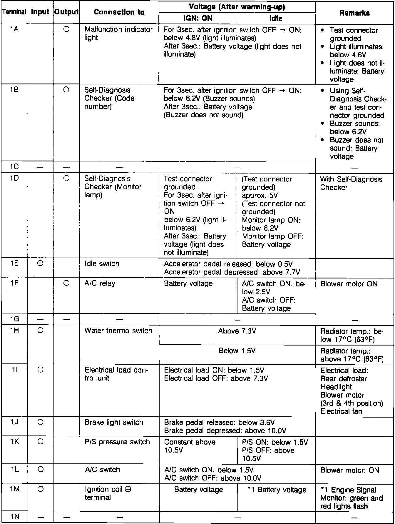 NOTE: If the input and output devices and related wiring are normal, but the engine control unit terminal voltage is incorrect, replace the engine control unit.