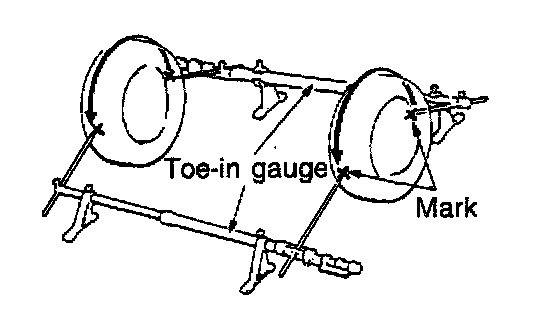 4. Measure the distance between the marked lines at the front and rear of the tires.
