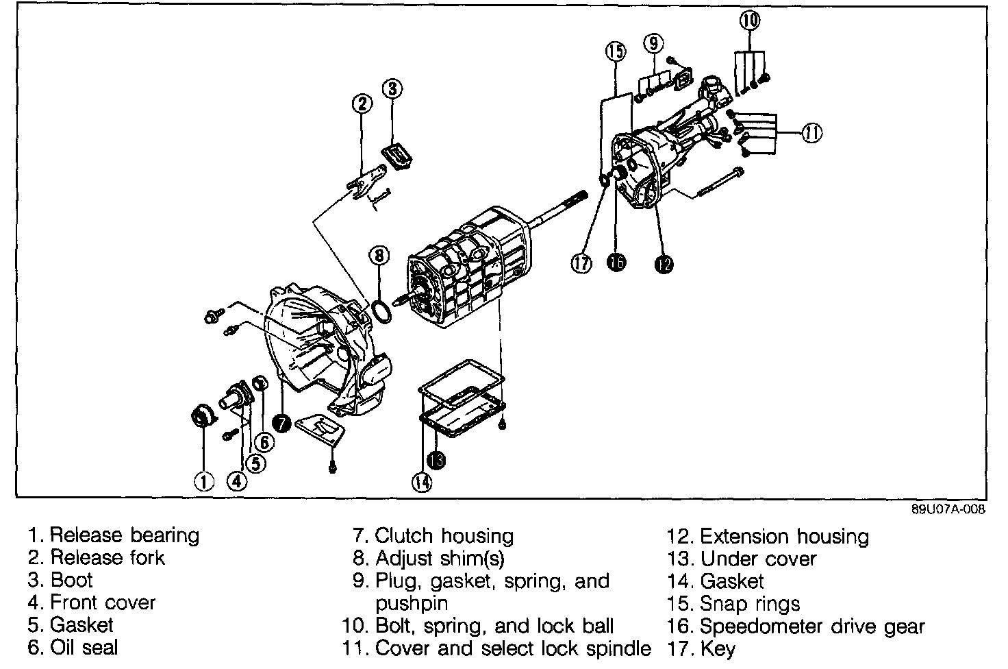 4. Remove the extension housing attaching bolts.