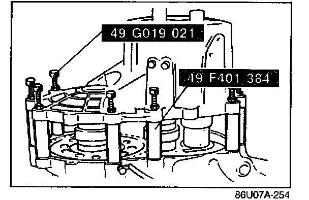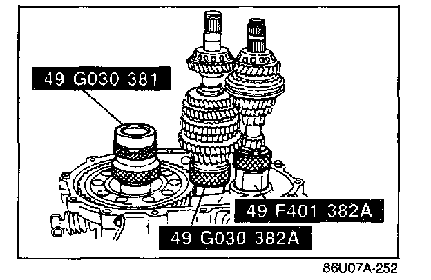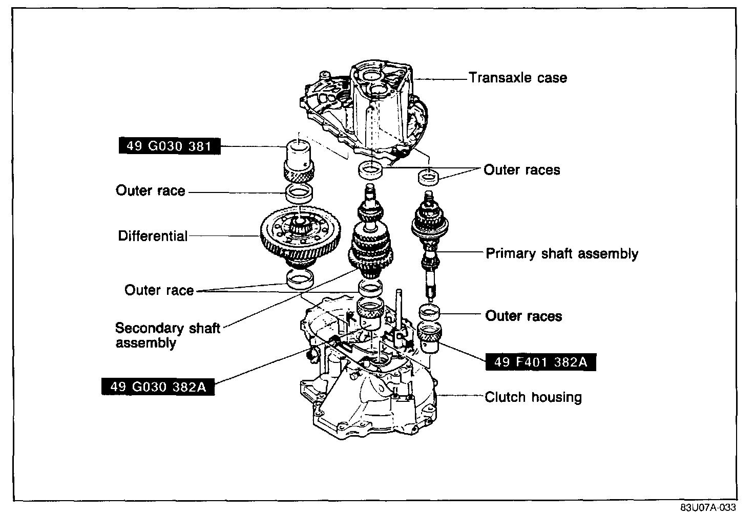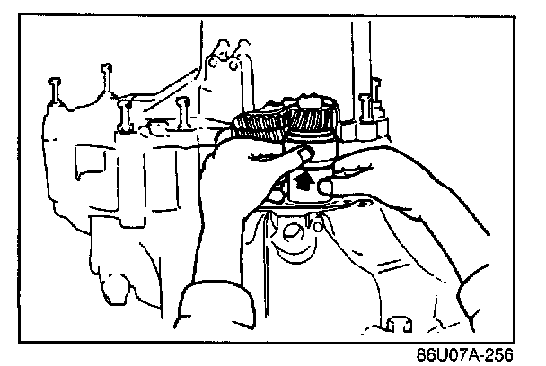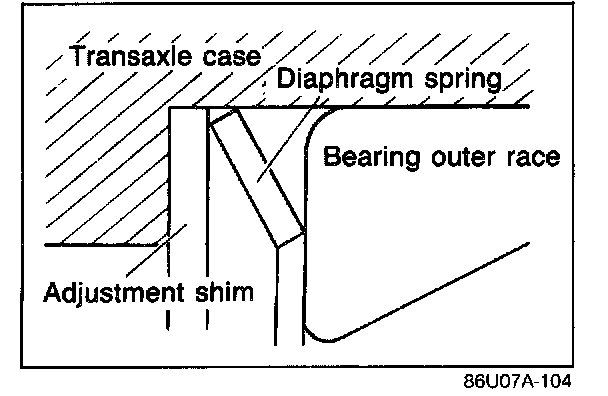 1. Install the primary and secondary shaft bearing outer races into the transaxle case (diaphragm springs and shims removed).