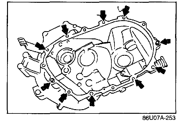 Install the transaxle case then tighten the SST (bolts) to the specified torque.
