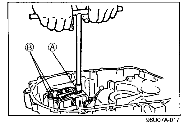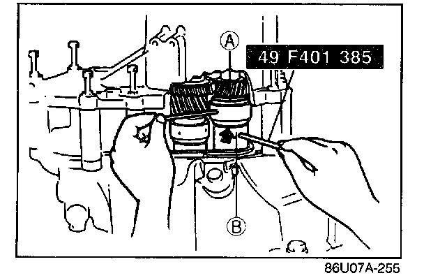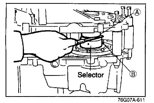 6. To seat the bearings, mount the SST (bars) on parts (A) and (B) of the selector, and then turn the selector so the gap is widened.