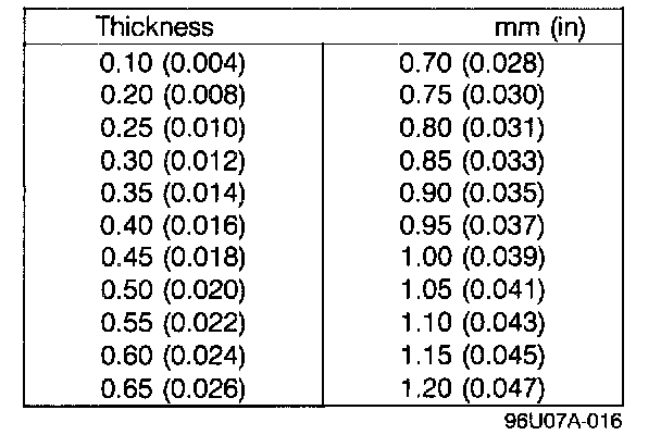 13. Add 0.15 mm (0.0059 in) to the measured clearance and select the combination of shims closest in value to that measurement.