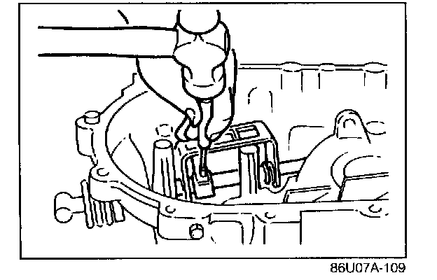 12. Use a feeler gauge to measure the gap in the selector for the differential.