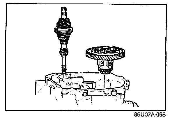 1. Set the primary shaft gear and the differential into the clutch housing.