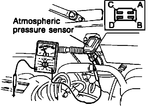 1. Connect a voltmeter to the atmospheric pressure sensor terminal wire "D".