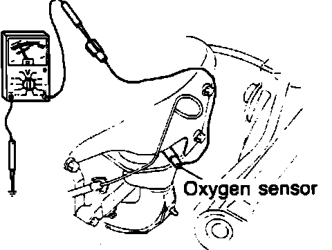 3. Connect a voltmeter between the oxygen sensor connector (oxygen sensor side) and ground.