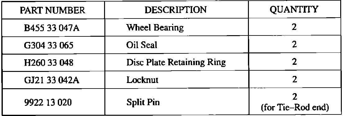 Although the part numbers of related parts have not been changed, the following parts are necessary for replacing the wheel bearing.