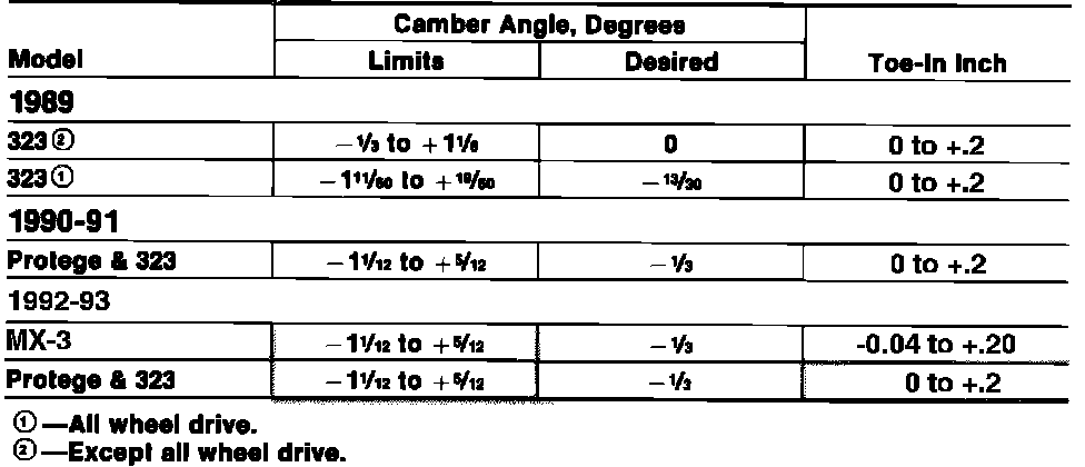 Rear Wheel Alignment Specifications: