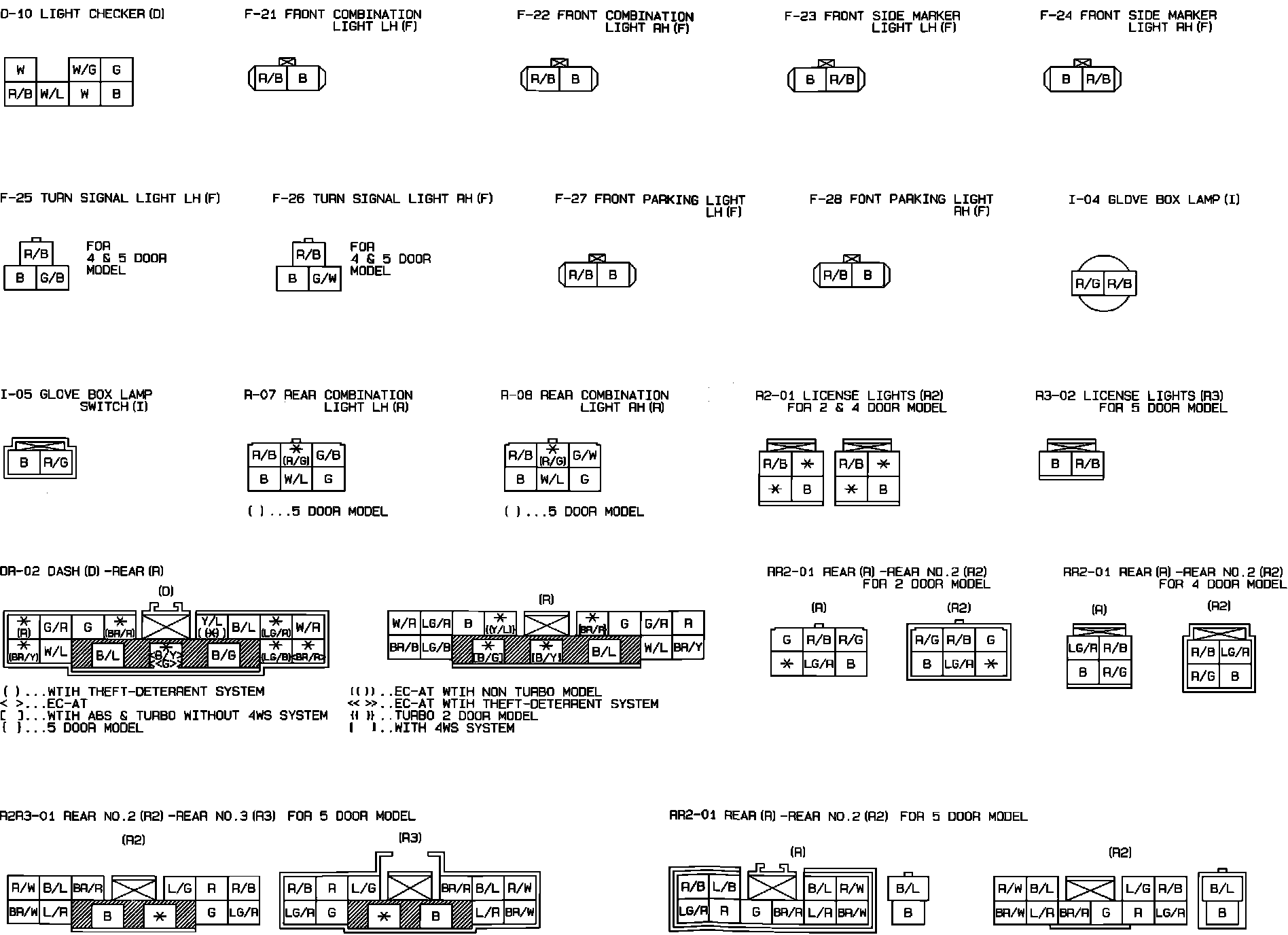 Front & Rear Side Marker, Front Parking, Tail, License & Glove Box Lights. Connector Identification: