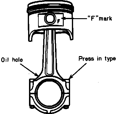 3. Set connecting rod in piston with oil hole in large end opposite F mark.