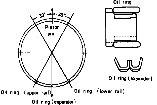 6. Install three piece oil rings as follows: