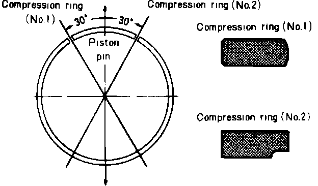 10. Position opening of each ring as shown, Figs. 13 and 14.