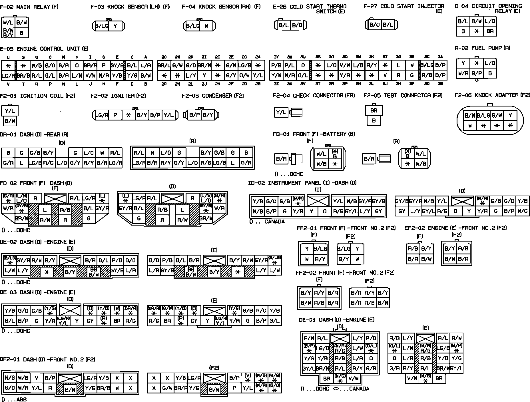 Ignition & Engine Control System. DOHC Engine. Connector Identification: