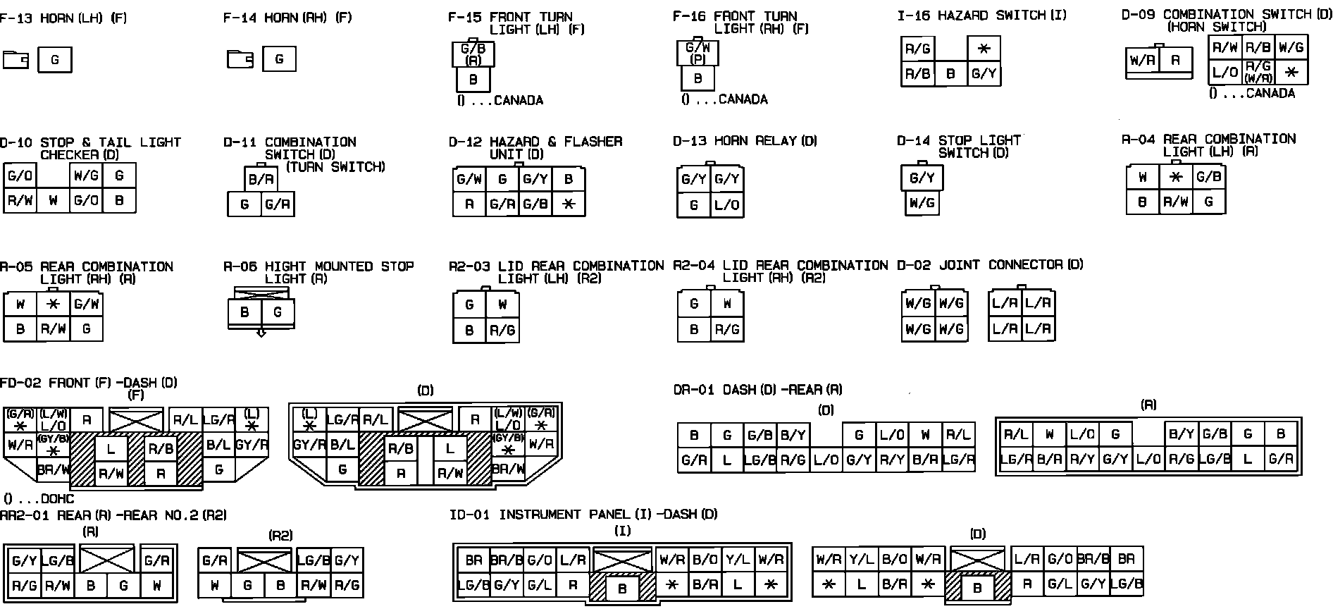 Turn, Hazard, Stop, Horn & Back-Up Lights. Connector Identification: