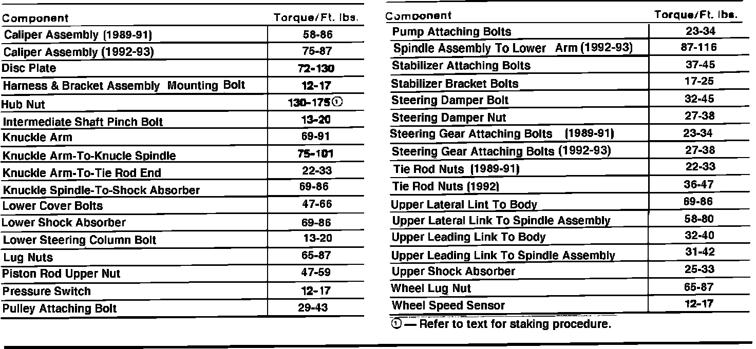 Tightening Specifications: