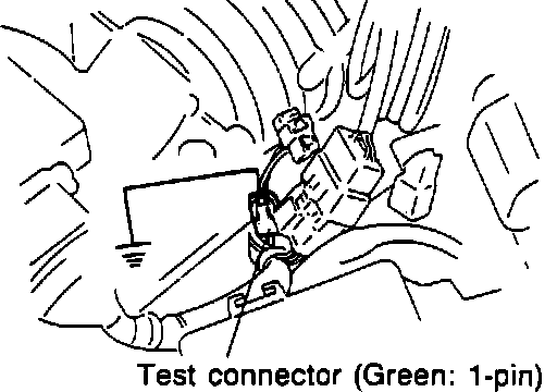Test connector input can be checked at ECU terminal 1I, ignition switch "ON." With connector grounded, terminal voltage should be 0V. With connector not grounded, voltage should be approximately 12V. If not as specified, check wiring between test connector and ECU.