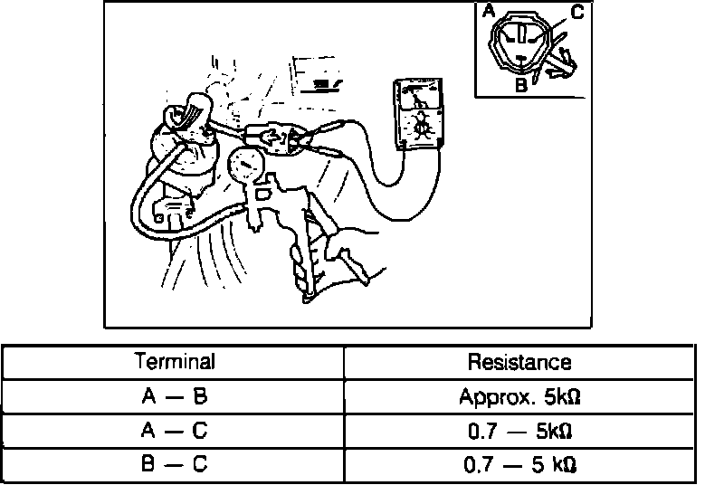 6. If not correct at terminal "C," check sensor resistance, wiring harness and ECU terminal 2F.