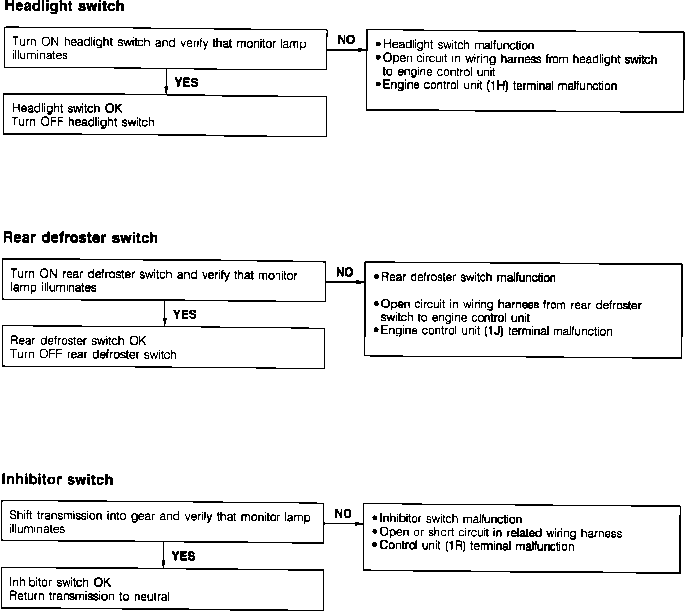 4. Turn ignition switch "ON." Check that monitor lamp illuminates when each switch is made to function according to procedure on image chart.