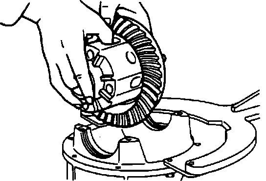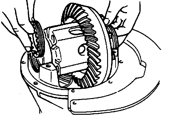10. Place the differential gear assembly in the carrier, ensuring marks on the face of the pinion and ring gear tooth are in alignment.