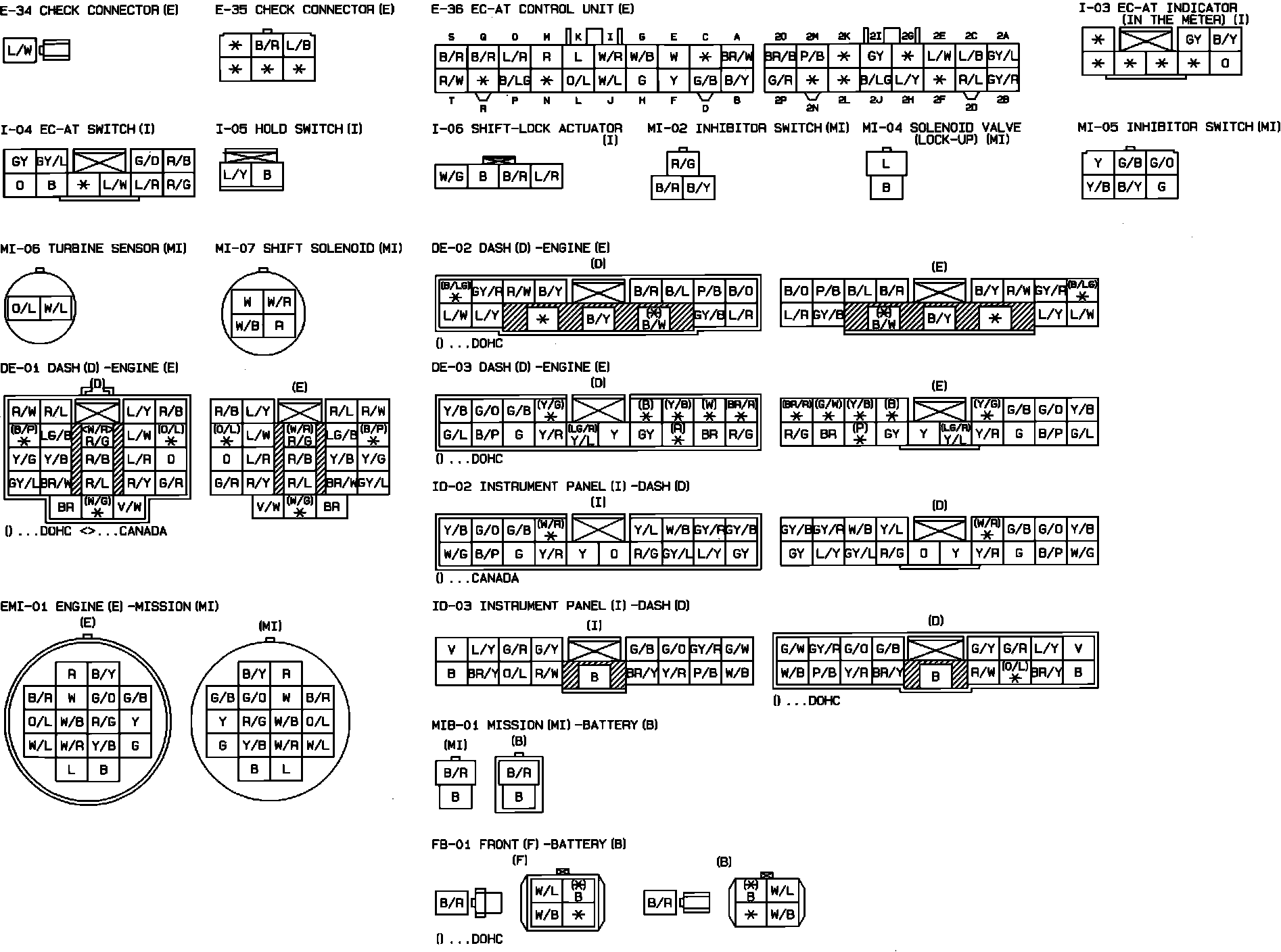 Automatic Transmission Control Unit & Shift Lock System. SOHC Engine. Connector Identification:
