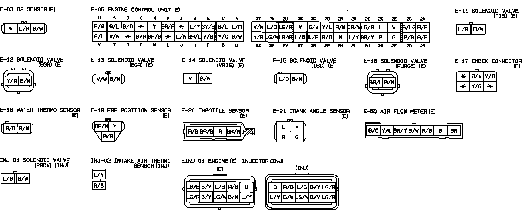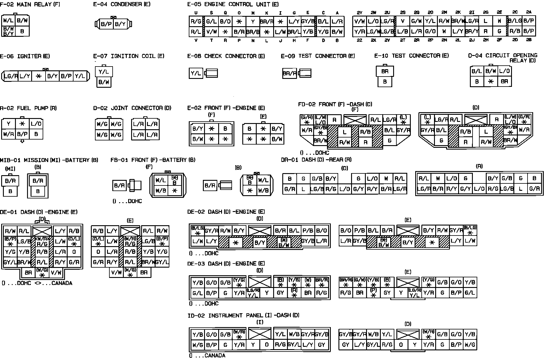 Ignition & Engine Control System. SOHC Engine. Connector Identification: