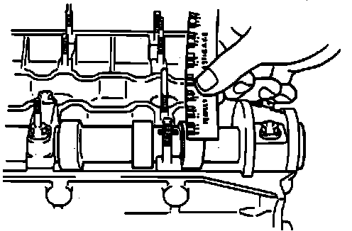 7. Measure camshaft endplay, measurement should not exceed .008 inch (.20mm).