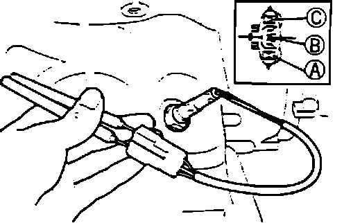 2. Connect an ohmmeter across terminals "B" and "C" on sensor side.