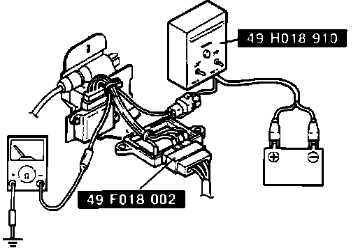 2. Connect adapter (SST #49 F018 002) between igniter and wiring harness. Connect igniter checker (SST #49 F018 002) to harness adapter.