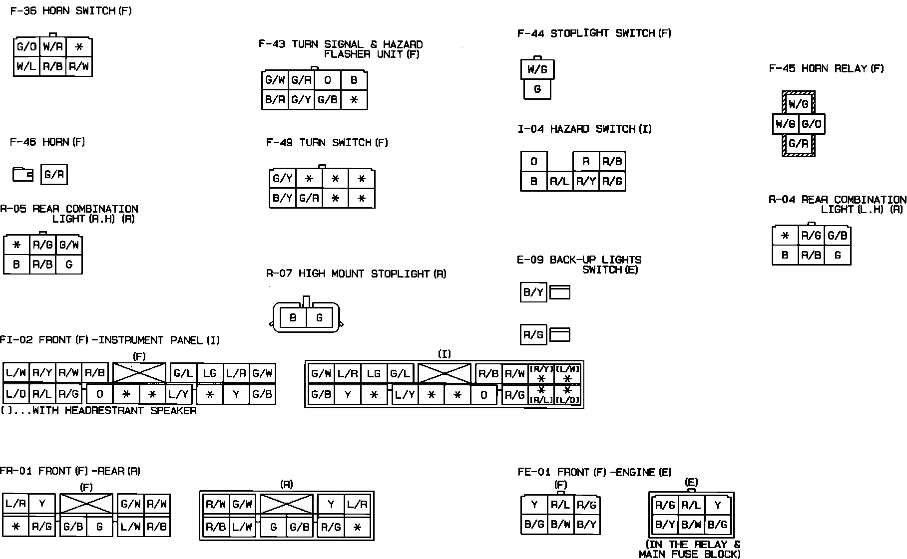 Turn Signal, Hazard, Stop, Back-Up, Horn & High Mount Stop Lights. Canada. Connector Identification: