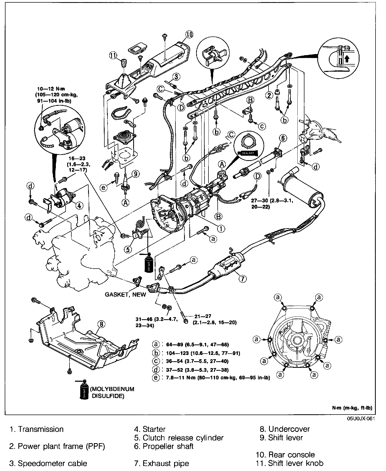 Tightening torque: 37 - 52 N-m (3.8 - 5.3 m-kg, 27 - 38 ft-lb)