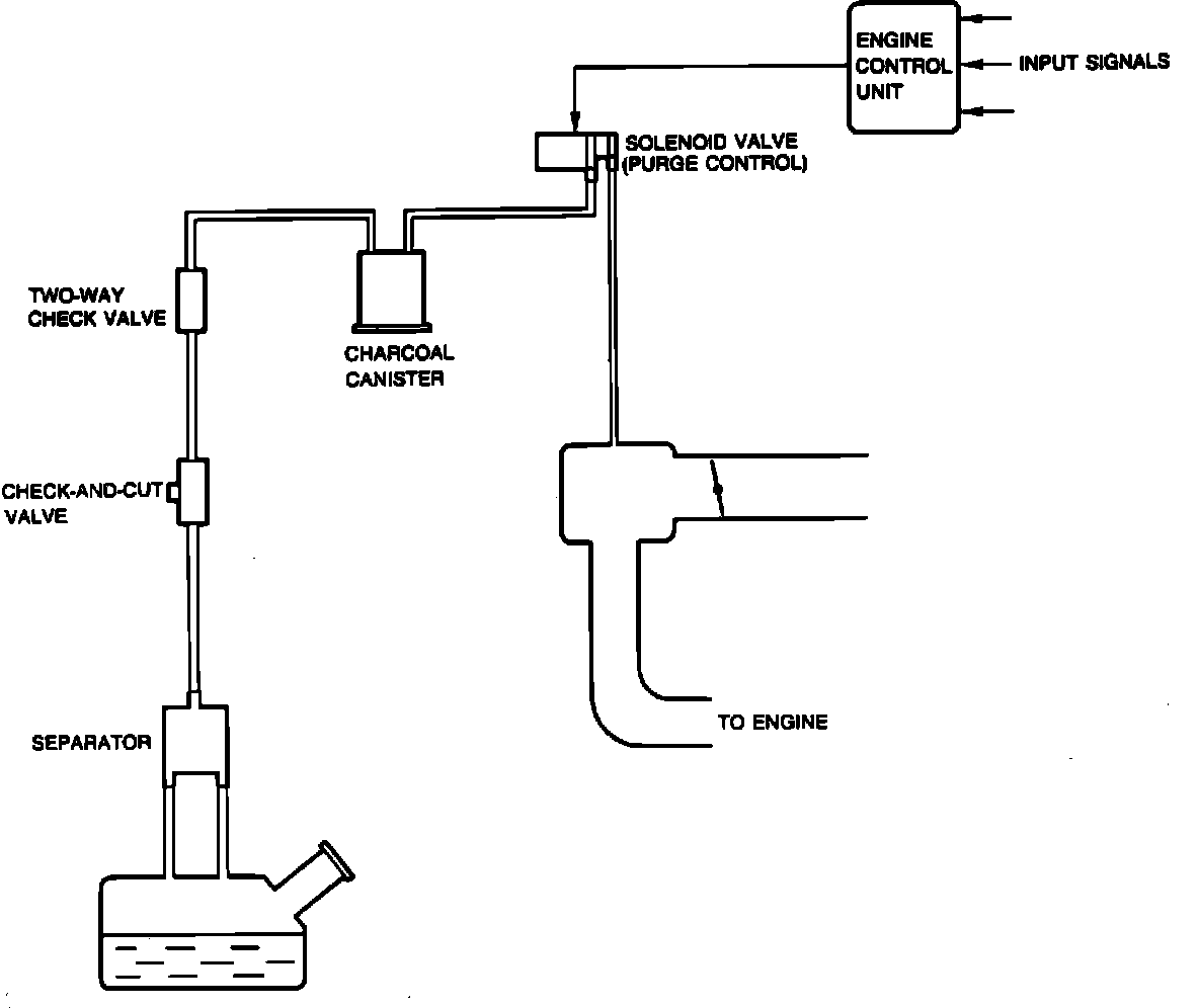 This system stores fuel vapor generated by the fuel tank in the cannister when the engine is not running. The fuel vapor is stored in the cannister until it is drawn into the combustion chamber and burned when the engine is started.