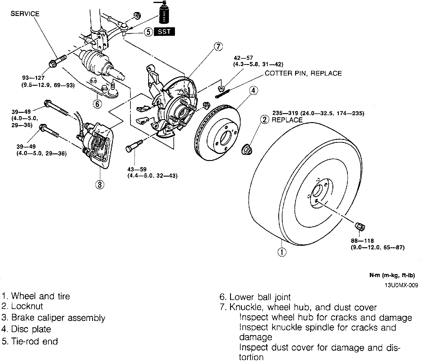 WHEEL HUB, STEERING KNUCKLE REMOVAL/INSTALLATION1. Remove in the order indicated in the illustration.