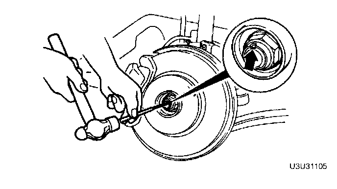 1. Raise the staked portion of the locknut by using a chisel.