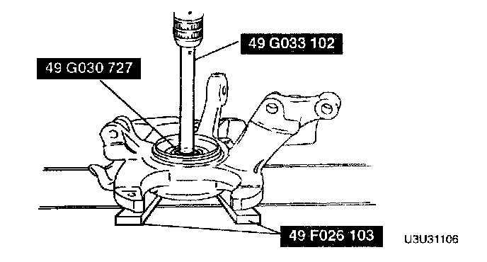 - Press in the new wheel bearing by using the SSTs.
