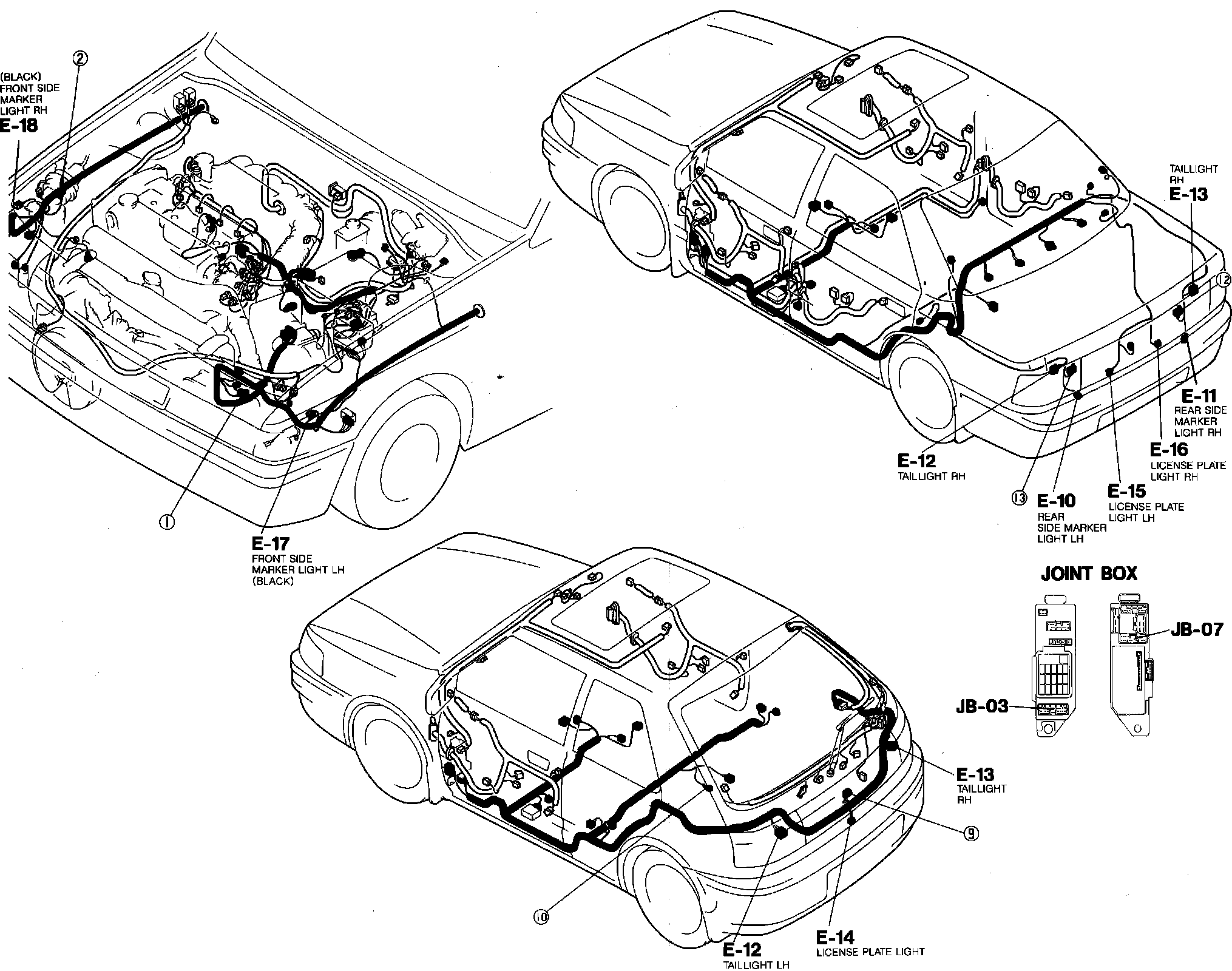 Taillights, License Plate Lights And Side Marker Lights. Harness And Connector Locations: