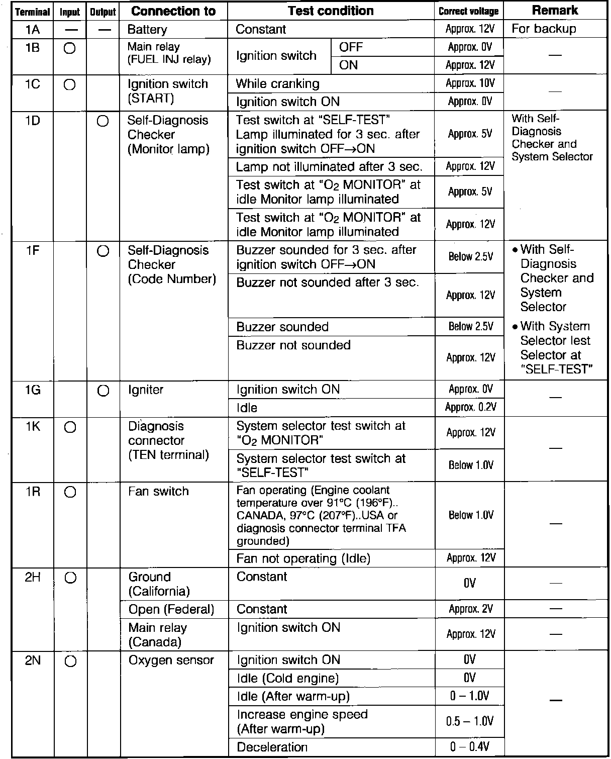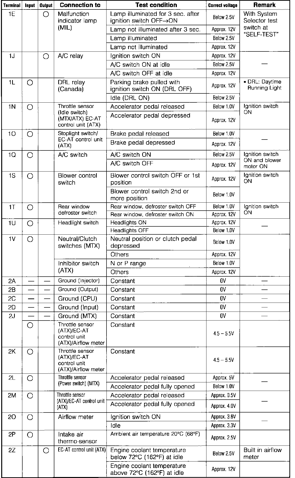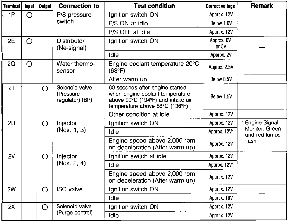 Engine Control System. 4wd. ECU Pin Voltage Chart: