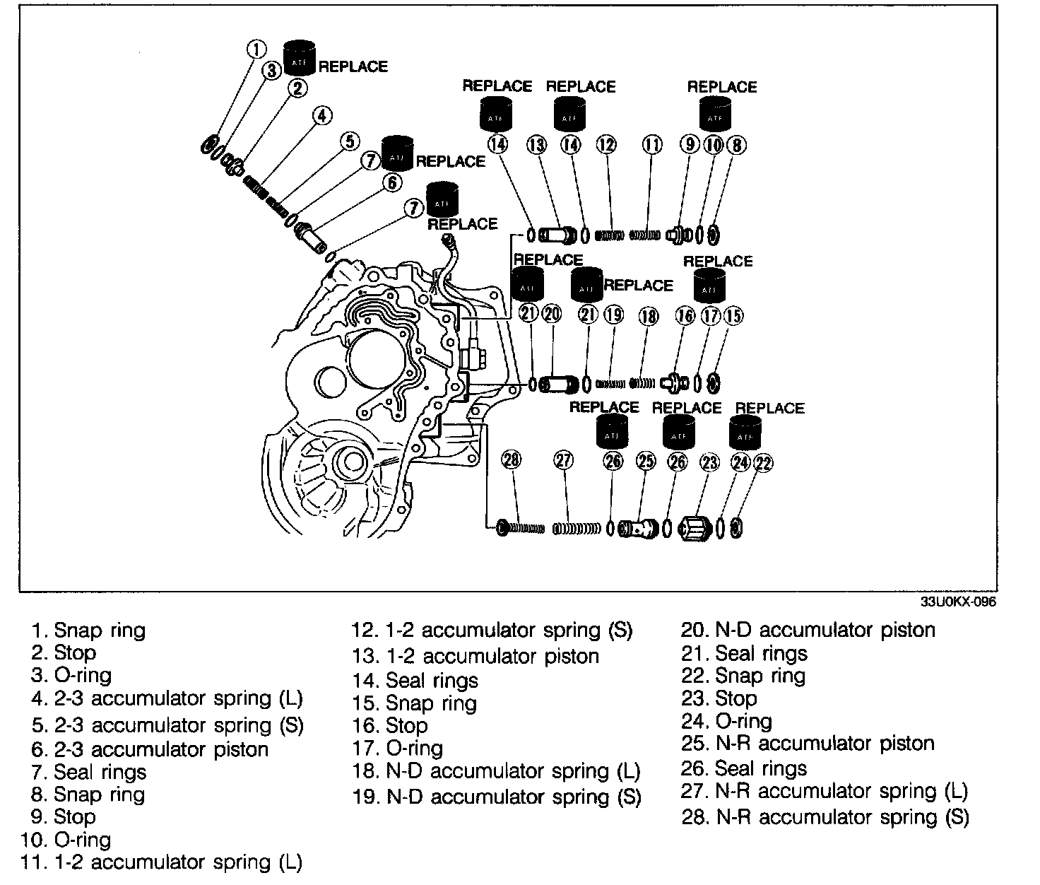 - 1-2 accumulator: piston-spring-stop