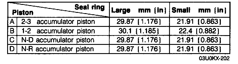 1. Apply ATF to the new seal rings and install them onto the accumulator pistons.