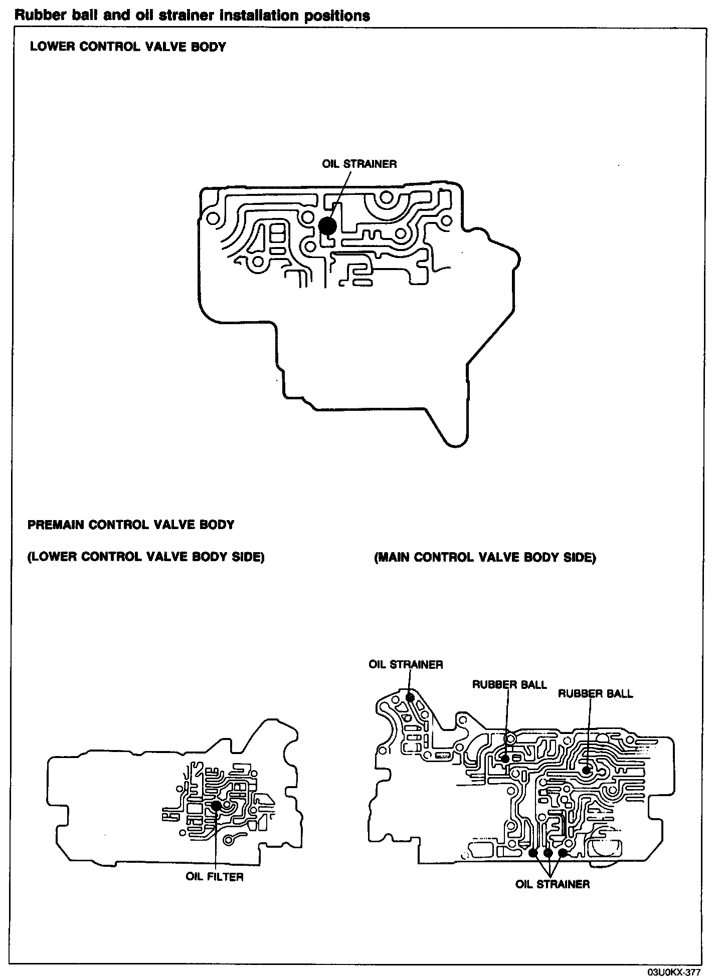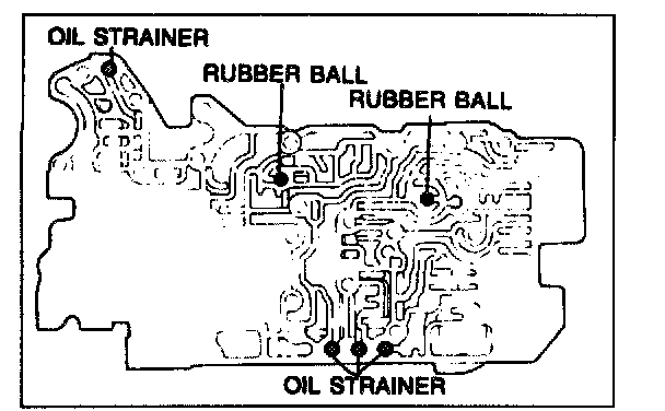 5. Install the rubber balls and oil strainers into their proper positions in the premain control valve body.