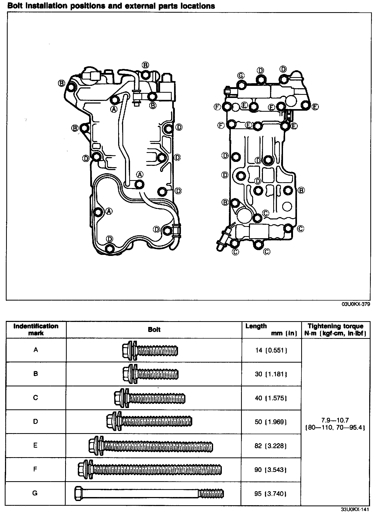 Tightening torque: 7.9 - 10.7 N.m {80 - 110 kg.cm, 70 - 95.4 in.lbf)