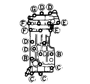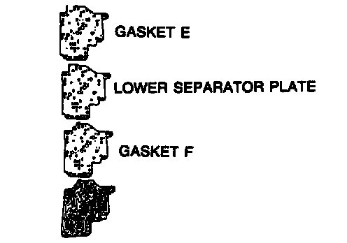 3. Set the new gasket F, lower separator plate, and new gasket E onto the lower valve body.
