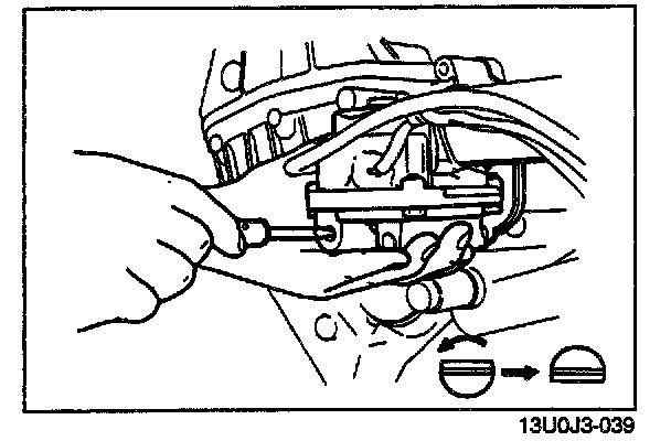 3. Remove the plug, and turn the rod as shown with a screwdriver.