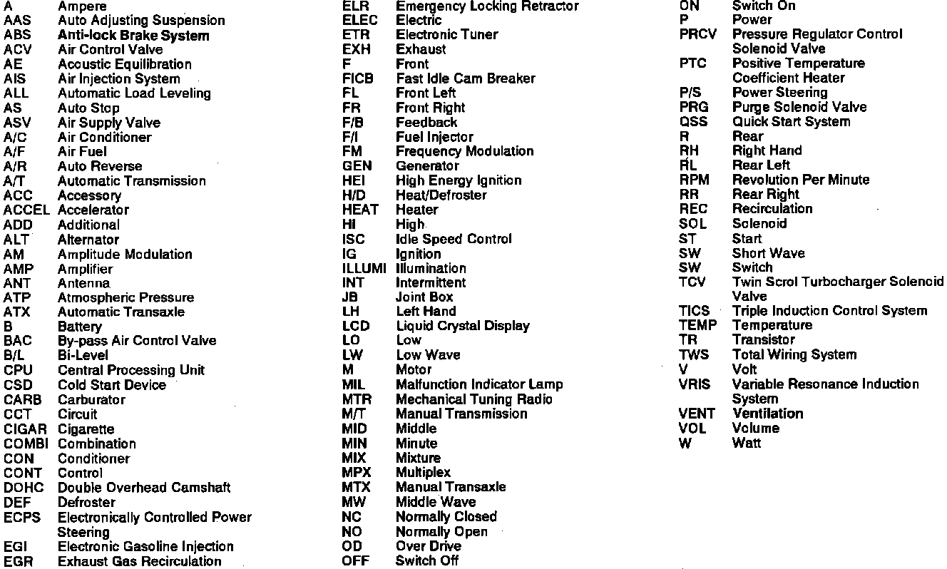 Reading Wiring Diagrams. Abbreviations: