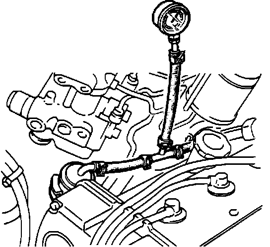 2. Using an extra piece of injector hose and a fuel "tee" fitting, connect fuel pressure gauge as shown in illustration.