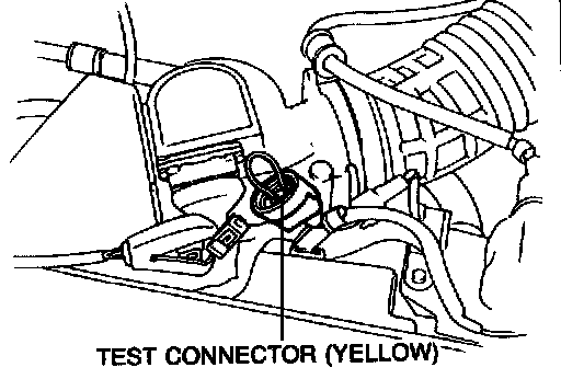 3. Energize fuel pump by bridging the terminals of the yellow fuel pump test connector (located near the air flow sensor, see illustration) and turning ignition "ON"